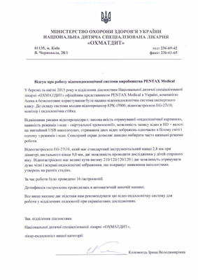 Коломоєць І. В. Зав. відділення діагностики Національної дитячої спеціалізованої лікарні «ОХМАТДИТ», лікар-ендоскопіст вищої категорії